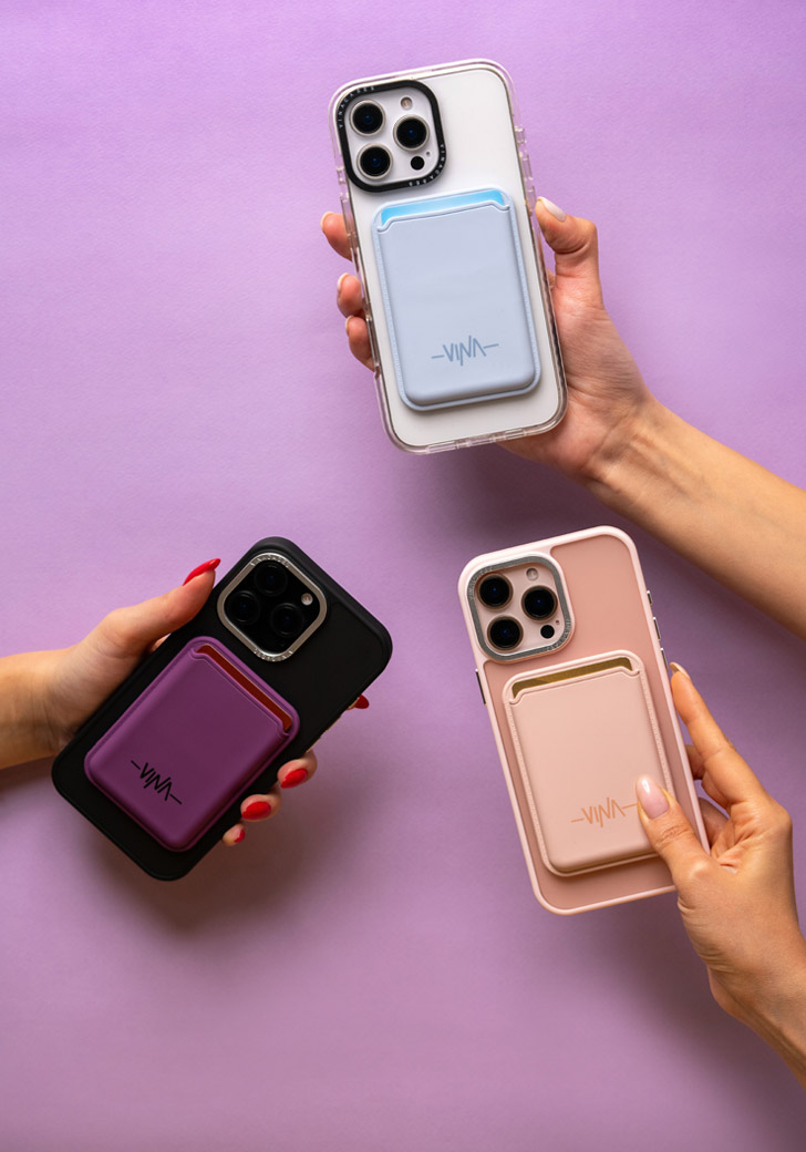 جاکارتی سیلیکونی آیفون ویناکیس انتخابی سبک، ضدآب و بادوام برای نظمدهی کارتهای بانکی، شناسایی و مترو است. این محصول از سیلیکون نرم و مقاوم ساخته شده و بهویژه برای اتصال مغناطیسی MagSafe به مدلهای جدید آیفون طراحی شده است. در کنار این مدل مدرن، جاکارتی چرمی نیز برای افرادی که ظاهر کلاسیک و لوکس را ترجیح میدهند موجود است.
