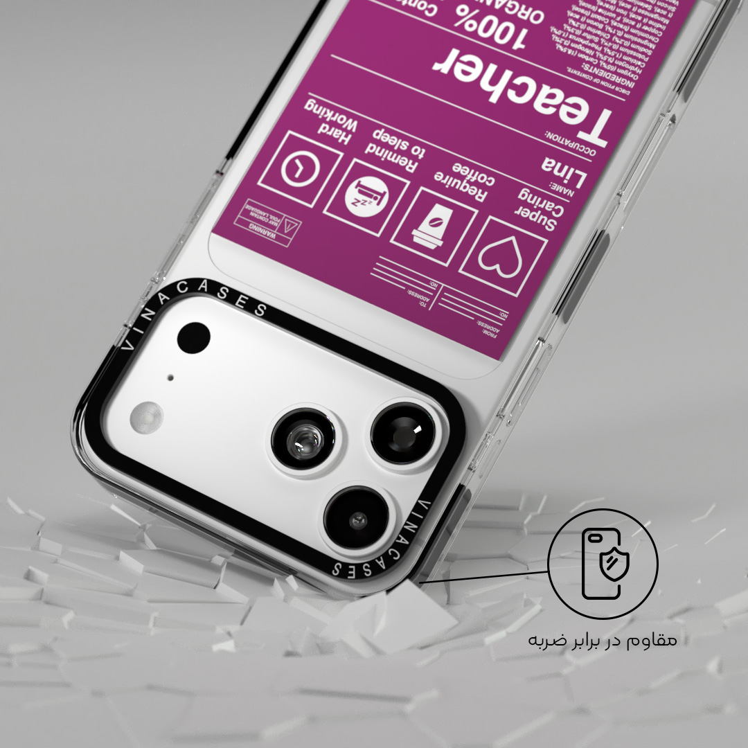 قاب ضد ضربه آیفون وینا علاوه بر محافظت بالا از گوشی موبایل شما، طرح های بسیار متنوع با قابلیت شخصی سازی هم دارد. سری جدید قاب های محافظ وینا کیفیت چاپ بسیار بالا و بسته بندی منحصر به فرد نیز دارند. جنس قاب ها با لبه های ژله ای و انعطاف پذیر برای استفاده راحت از قاب و دکمه های گوشی، و پشت سخت و محکم برای مقاومت در برابر ضربه و زمین خوردن گوشی طراحی شده است. علاوه به این ، وزن کم و باریک بودن قاب ها ظرافت و زیبایی آن را چندین برابر کرده است. طرح روی قاب با جدیدترین و با کیفیت ترین دستگاه چاپ UV در دنیا چاپ می شوند.